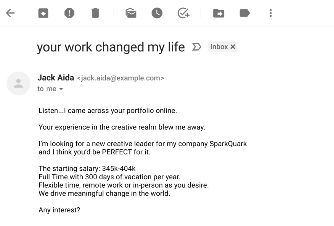 Not surprisingly, you started to reach for the “Report Spam” button.