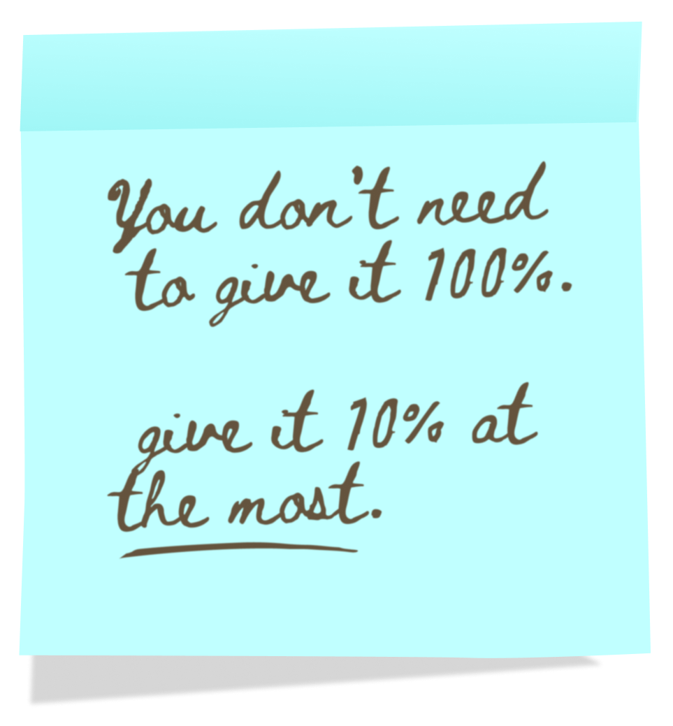 Today, I want to remind you NOT to "give it your all". Seriously. Don't give 100%. Don't even give 50%. Give it like, TEN percent. At the most.