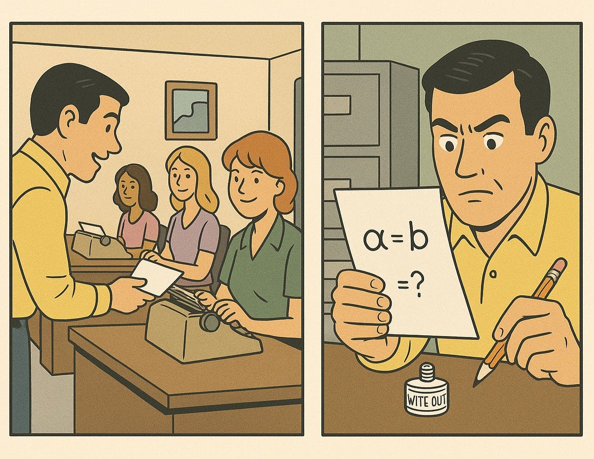 In 2025, this process seems bonkers. But it's just what they had to do back then before typing skills and personal computers were common. They were constrained by the inherent limitations of the system.
