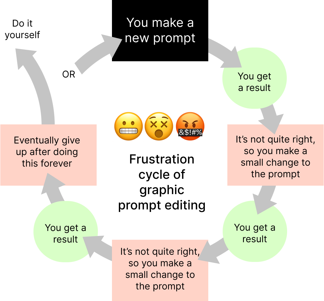 I call this “The Frustration Cycle of Graphic Prompt Editing” — and the struggle is REAL.