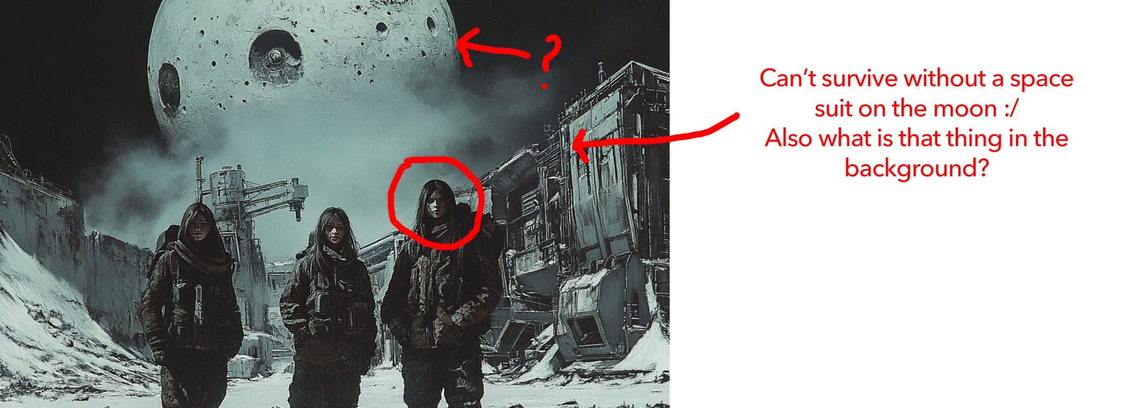 I decided to use TWO different image-generation softwares to generate two different batches of concept art - so that you and I can be judgey about “Who Gen’d It Best”. ;)